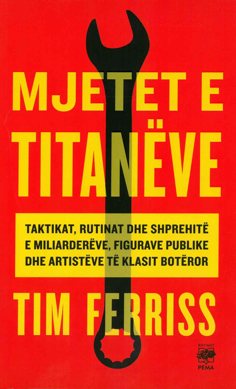 Përgjatë dy vjetësh, autori në krye të listës së librave më të shitur të New York Times-it, Tim Ferris, akumuloi taktika, rutina dhe mjete të mjaft figurave publike të klasit botëror anembanë globit. Të gjitha ato i distiloi në një volum impresionues, duke renditur shumë e shumë këshilla dhe truke që e ndihmuan të dyfishonte të ardhurat, fleksibilitetin, lumturinë e plot aspekte të tjera. Titulli i tij është MJETET E TITANËVE.MES QINDRA TAKTIKAVE, DO TË MËSONI:* Si të optimizoni mëngjeset tuaja me rutinën “përgatitore” të Tony Robbins-it* Si të “luani në sulm” gjatë jetës suaj njësoj si investitori miliarder Chris Sacca*